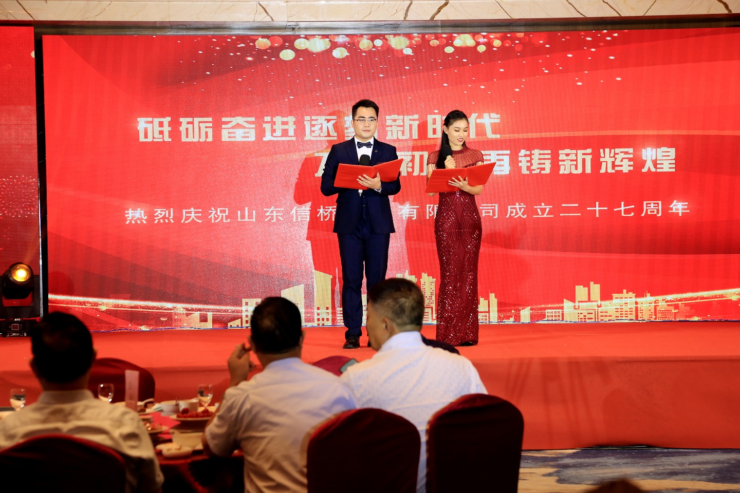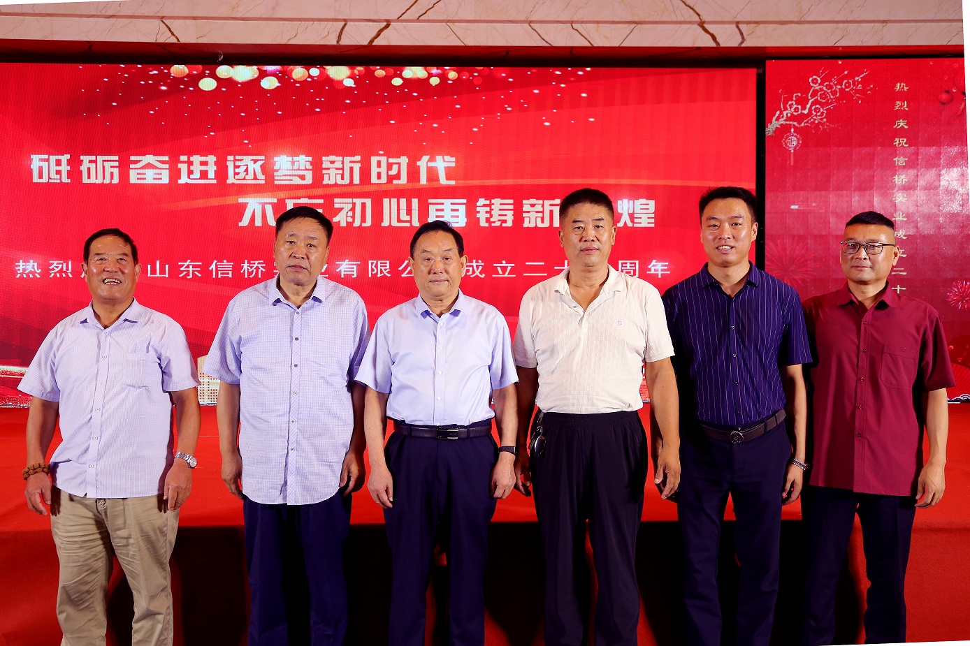歲月如歌,風霜如畫,二十七年彈指一揮間,山東信橋?qū)崢I(yè)有限公司(以下簡稱山東信橋)迎來了二十七周年的生日。二十七年來,信橋人在激烈的市場競爭中奮力拼搏、砥礪前行,接受了市場風風雨雨的洗禮,取得了累累碩果。為了慶祝這一特殊的日子,2021年8月8日,以“拼搏進取,開創(chuàng)新時代”為主題的山東信橋二十七周年慶典活動在寶盛大酒店舉行。